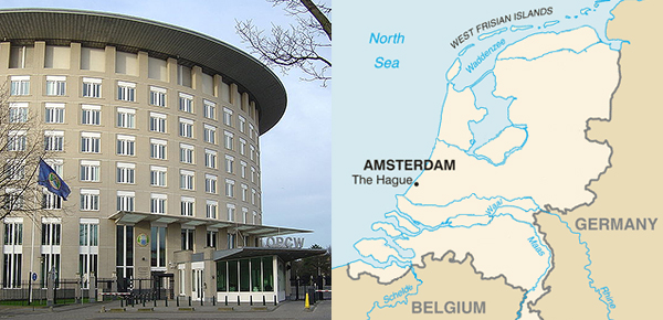 Main office building of the Organization for the Prohibition of Chemical Weapons & The Netherlands Map, WikiMedia Commons